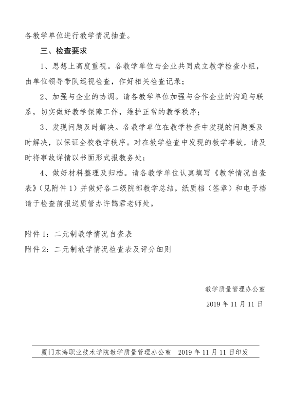 东海职院质管[2019]9号——开展2019-2020学年第一学期二元制教学专项检查的通知