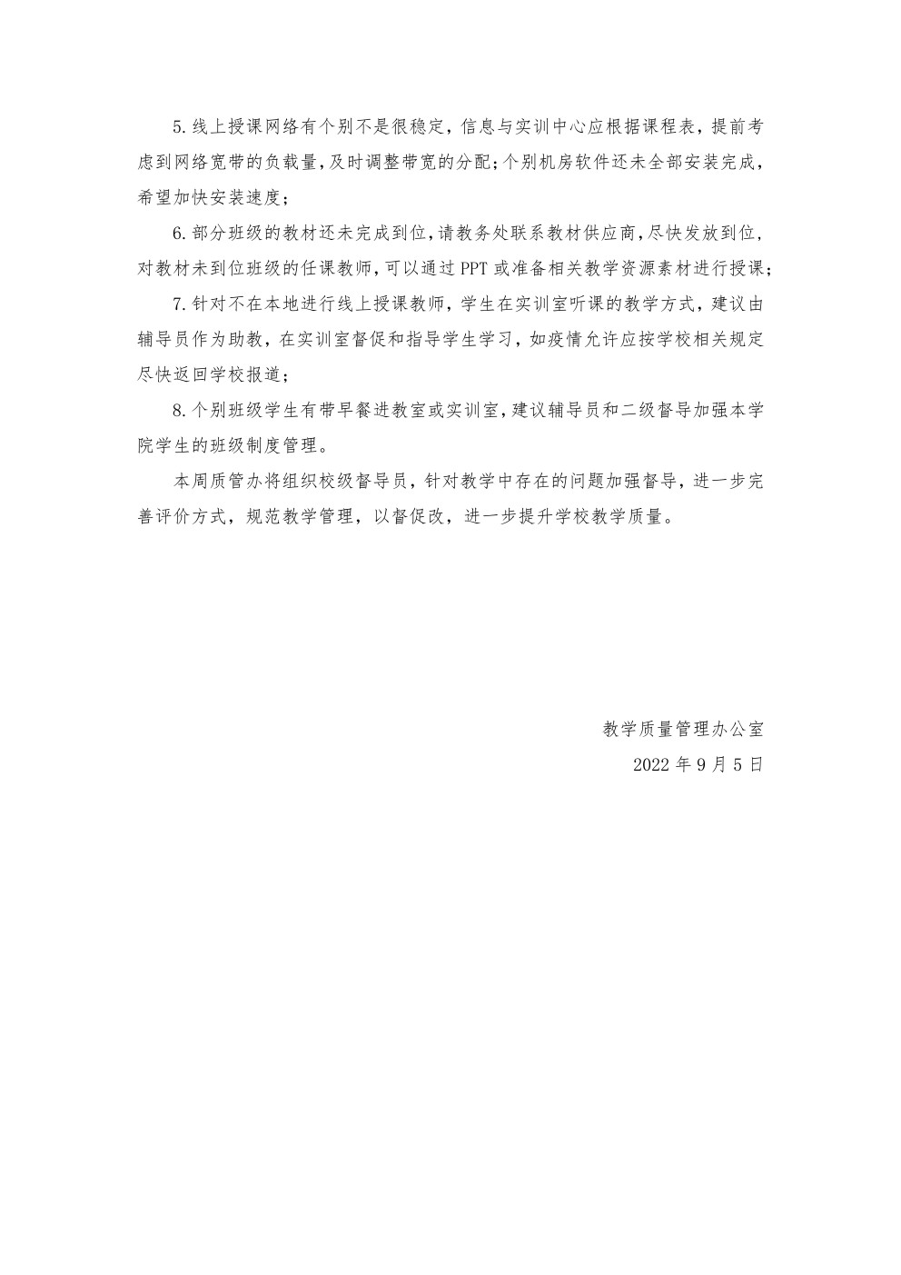 2022-2023学年第一学期开学第一天督导巡查情况通报