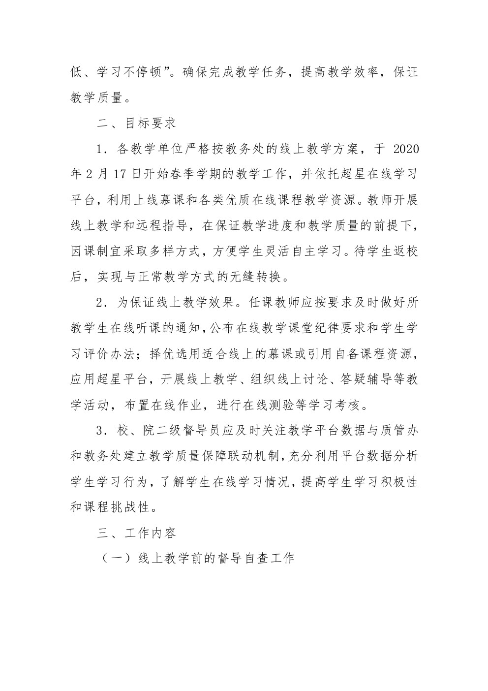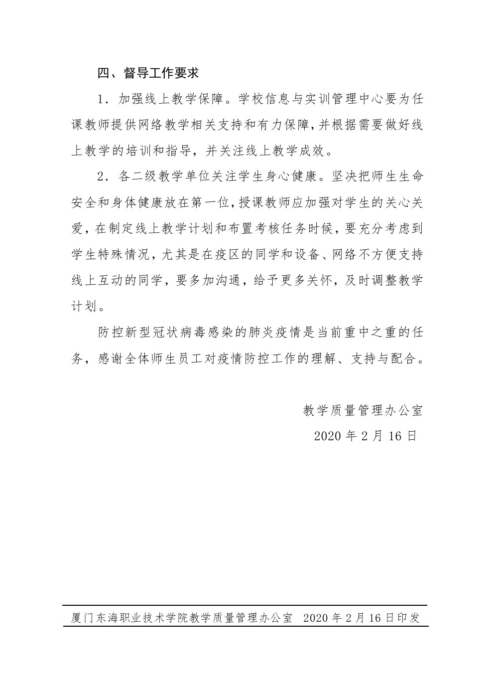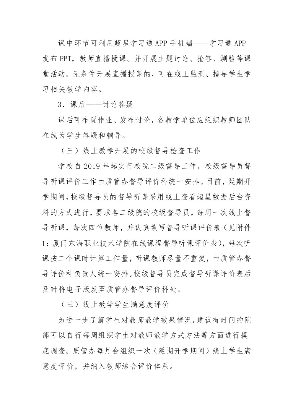 东海职院质管[2020]1号——关于2019-2020学年第二学期延期开学期间教学督导工作方案