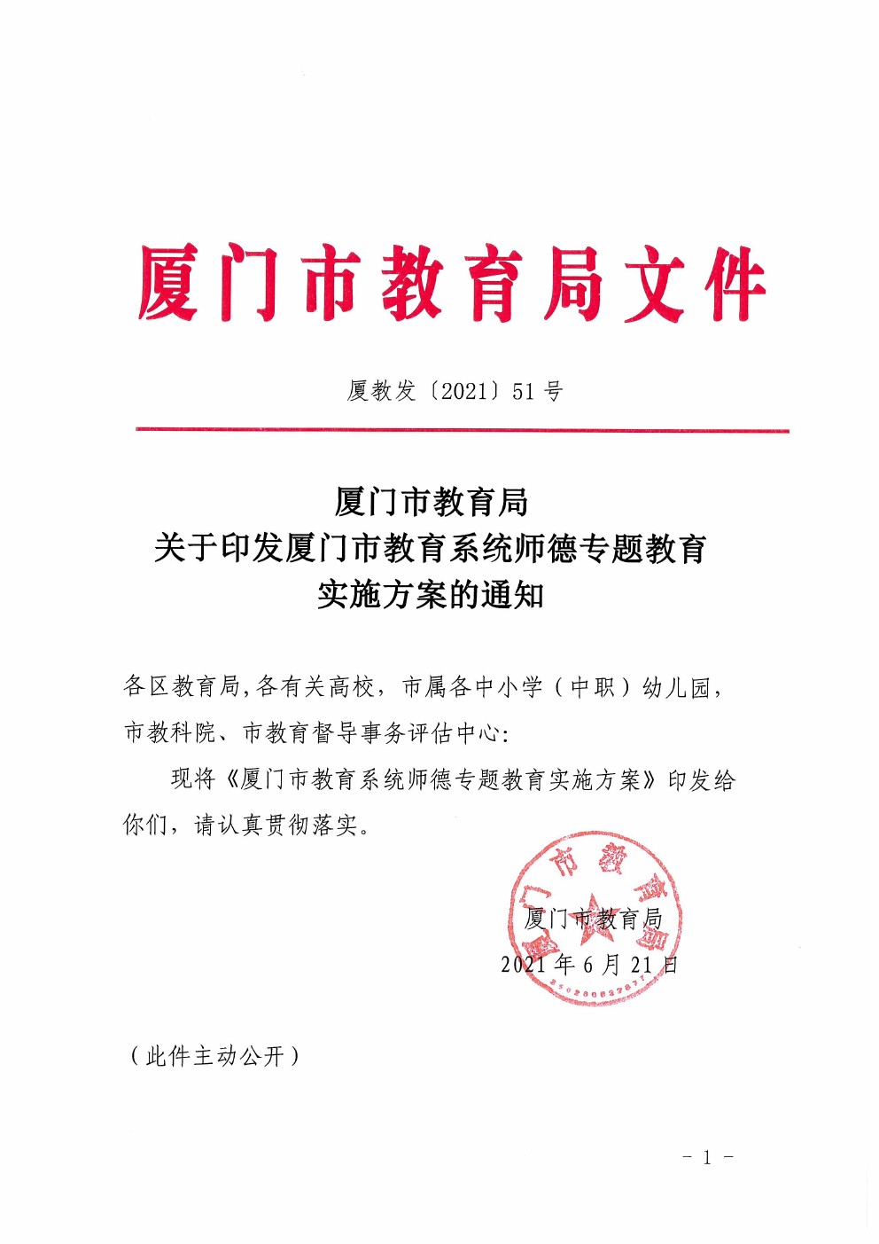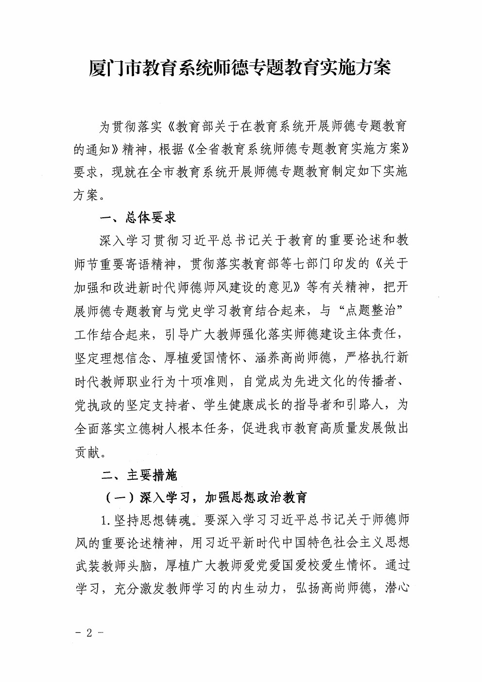 关于印发厦门市教育系统师德专题教育实施方案的通知
