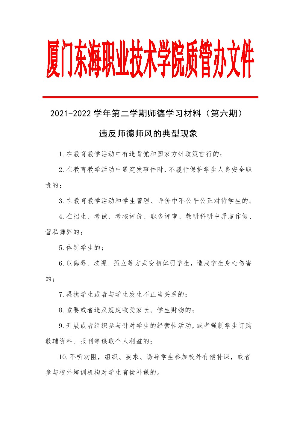 2021-2022学年第二学期师德学习材料(第六期)