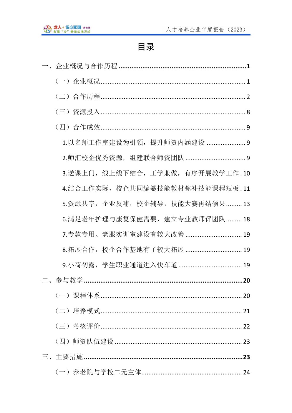 福建省伍心养老服务有限公司参与高等职业人才培养企业年度报告(2023).pdf