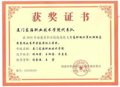 7.2018年7月指导学生参加2018年福建省职业院校技能大赛《高职组计算机网络应用》赛项获得团体三等奖。