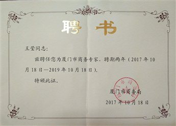 2.2015.10-2019.10厦门市商务专家;