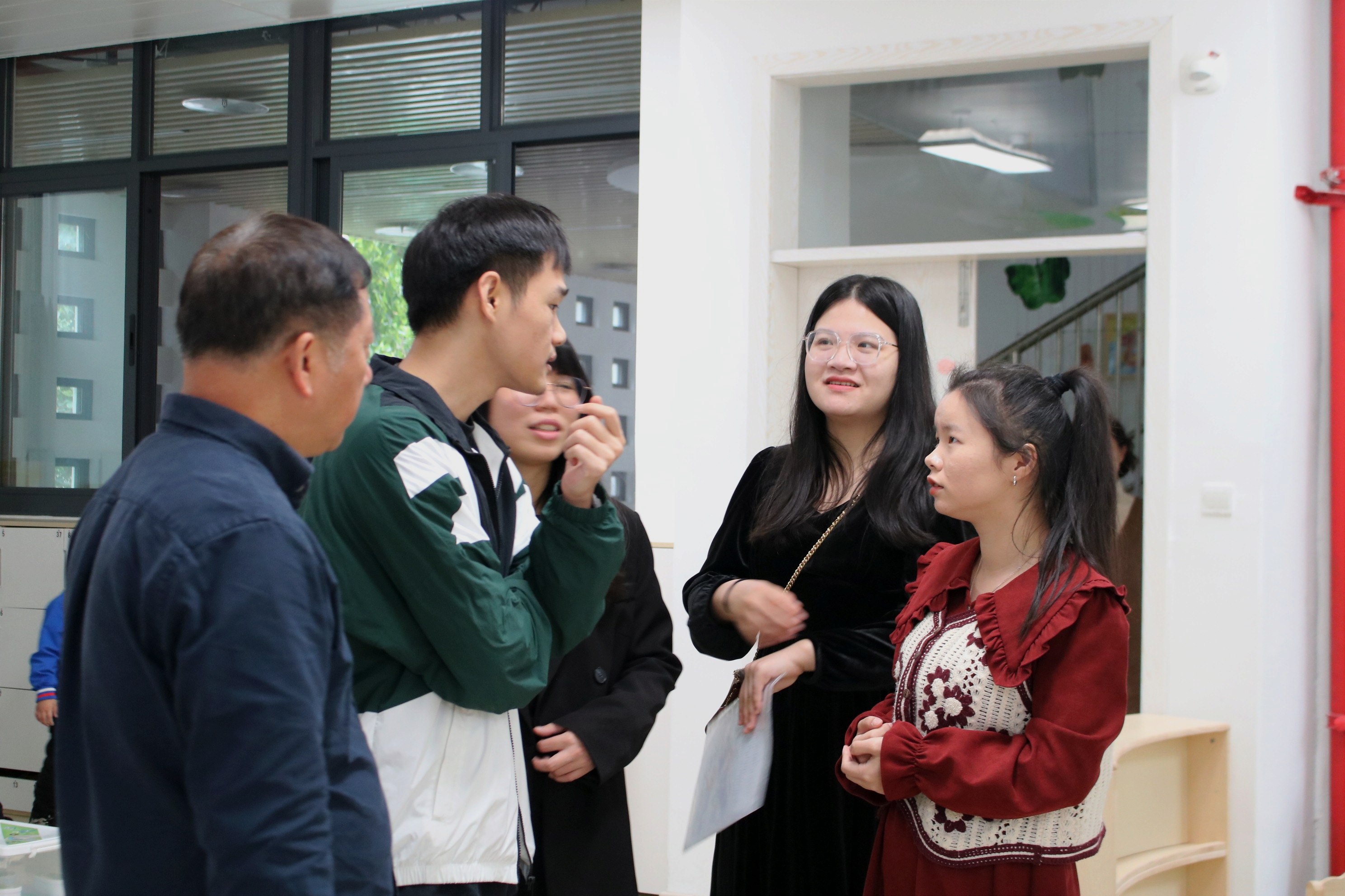 为进一步加强校企合作,增强我院的实习实践基地力量,促进复合型人才培养,2023年12月4日上午,教师教育学院院长施茂枝教授、院长助理曾丽燕老师、毕业班辅导员陈锖锖老师、陈麒老师一行赴同安区实验幼儿园参加双方共建签约揭牌仪式。同安区实验幼儿园园长颜毅真、副园长陈淑媚等多名干部出席仪式。 随后,教师教育学院一行走访在该园实习的学生,详细倾听了学生在实习过程中遇到的难题。毕业班辅导员在走访过程中详细询问了学生的实习状况,认真听取了同学们的实习体会,对实习学生的实习内容和实习收获等情况进行了深入了解。