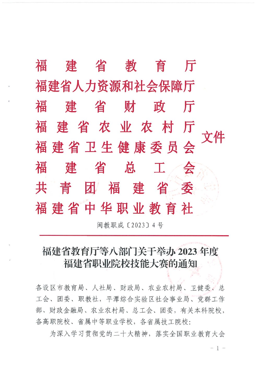 闽教职成〔2023〕4号《福建省教育厅等八部门关于举办2023年度福建省职业院校技能大赛的通知》.pdf