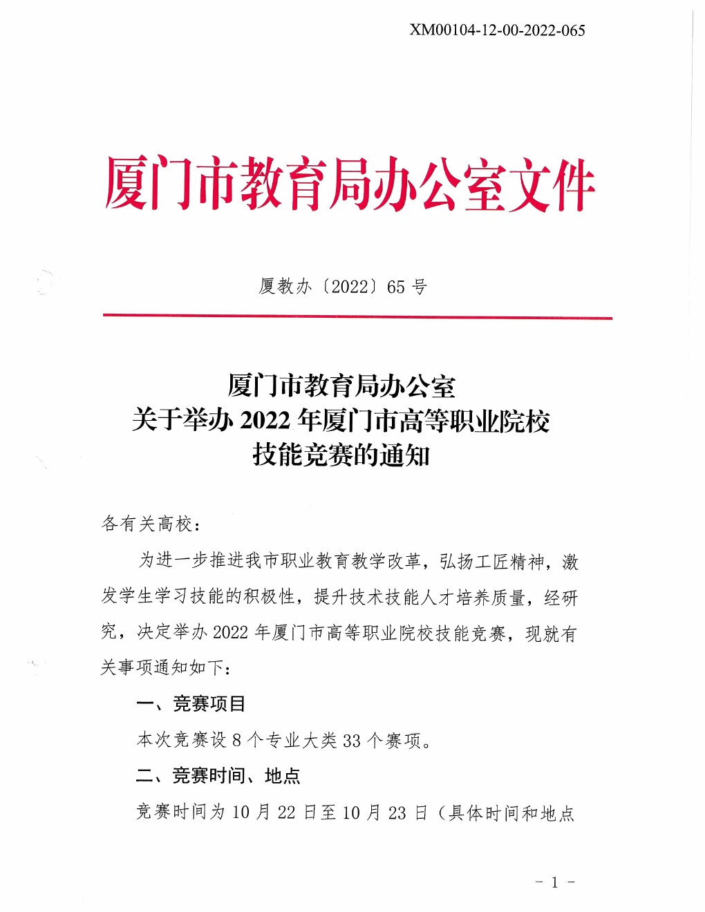 厦门市教育局办公室关于举办2022年厦门市高等职业院校技能竞赛的通知.pdf