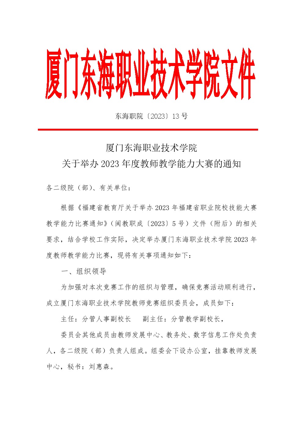 东海职院〔2023〕13号关于举办2023年度教师教学能力大赛的通知
