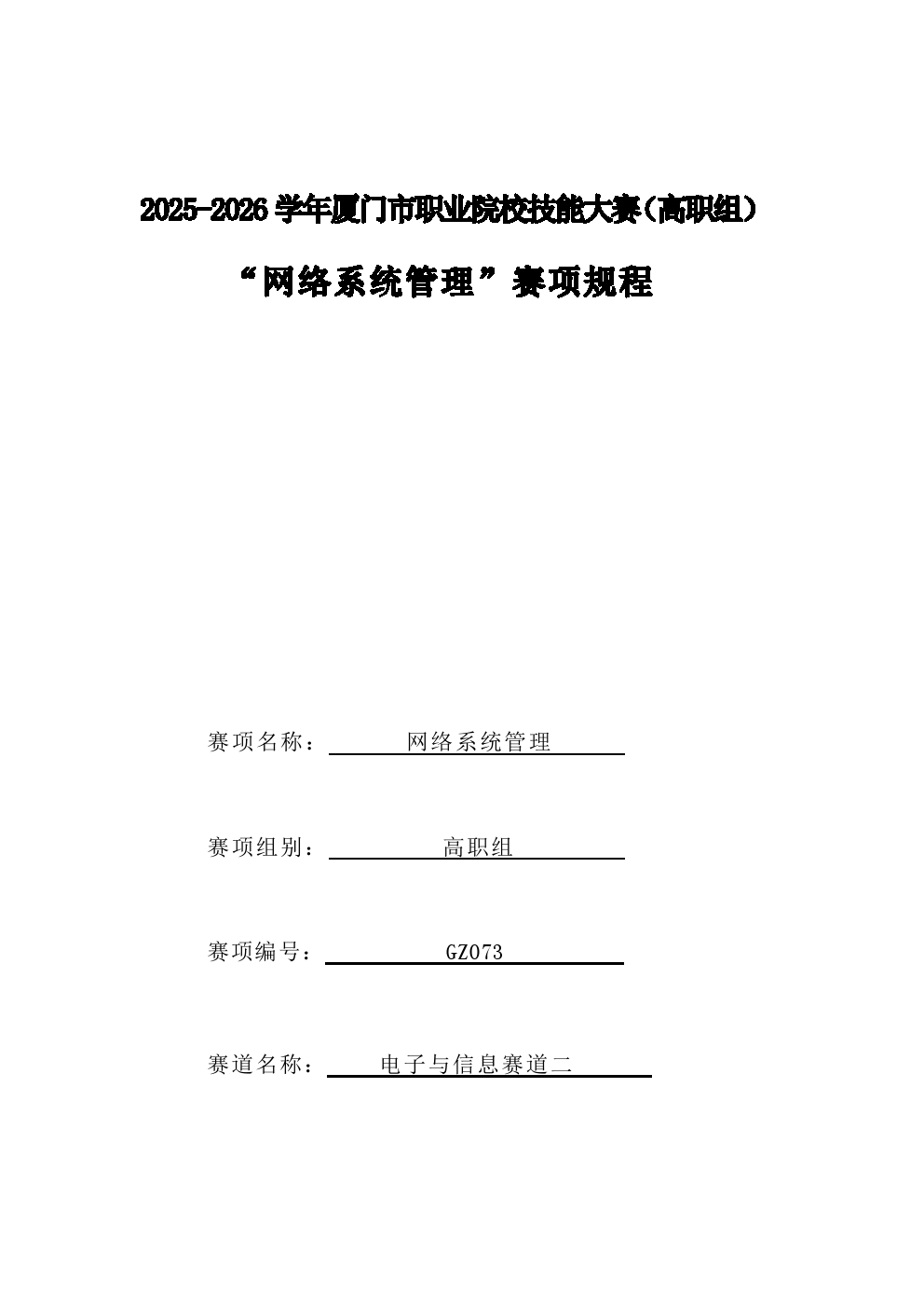 2025-2026学年厦门市职业院校技能大赛(高职组)网络系统管理赛项规程.pdf