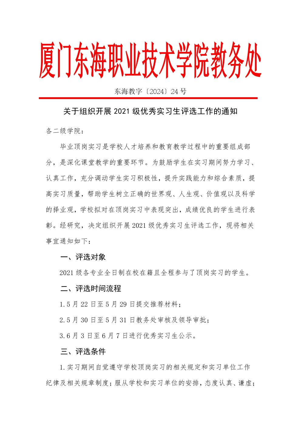 下一条:东海教字[2023]32号 关于做好2021级学生顶岗实习工作的通知