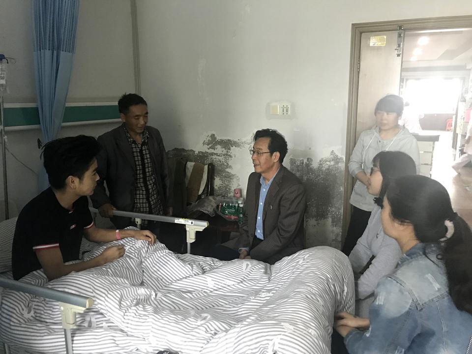 添加时间:2019-04-19近日,新葡的京官网党委黄平南书记、思政科沈秋贤科长、商学院潘方华助理、辅导员政娜老师一行前往厦门市第三医院,代表学校慰问因突发疾病入院治疗的病困学生王玉财同学。