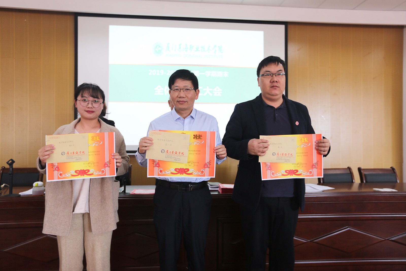 日前,在2019-2020学年第一学期工作总结大会暨先进表彰大会上,我院在本学期常规教学、科研项目、职业技能大赛等多个教学管理维度上均名列前茅,获得教学管理先进单位第一名。