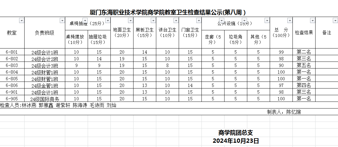 2024-2025学年第一学期商学院第8周班级卫生评比