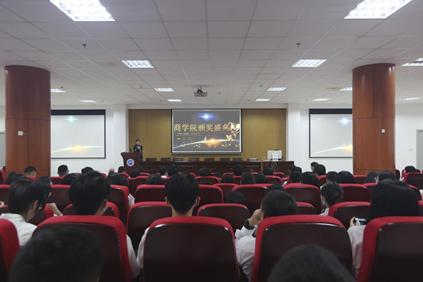 接着竞赛获奖学生郑伊凡作为代表进行了发言,他分享了让竞赛成绩提高的秘诀,就是勤练习,多专研。五四评优获奖学生代表陈鸿博的感言让大家更深的了解到他是位认真踏实负责团学工作的优秀团干。