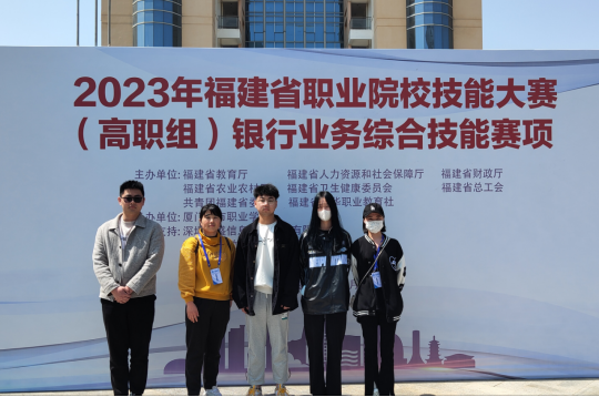 添加时间:2023-03-062023年3月3日—5日,2023年福建省高等职业院校银行业务综合技能大赛在厦门市城市职业技术学院举行。新葡的京官网商学院老师魏小兰、侯传娟指导的陈越嵘、郑伊凡、王煊萱、陈芝怡四位同学奋力拼搏,荣获团体三等奖。