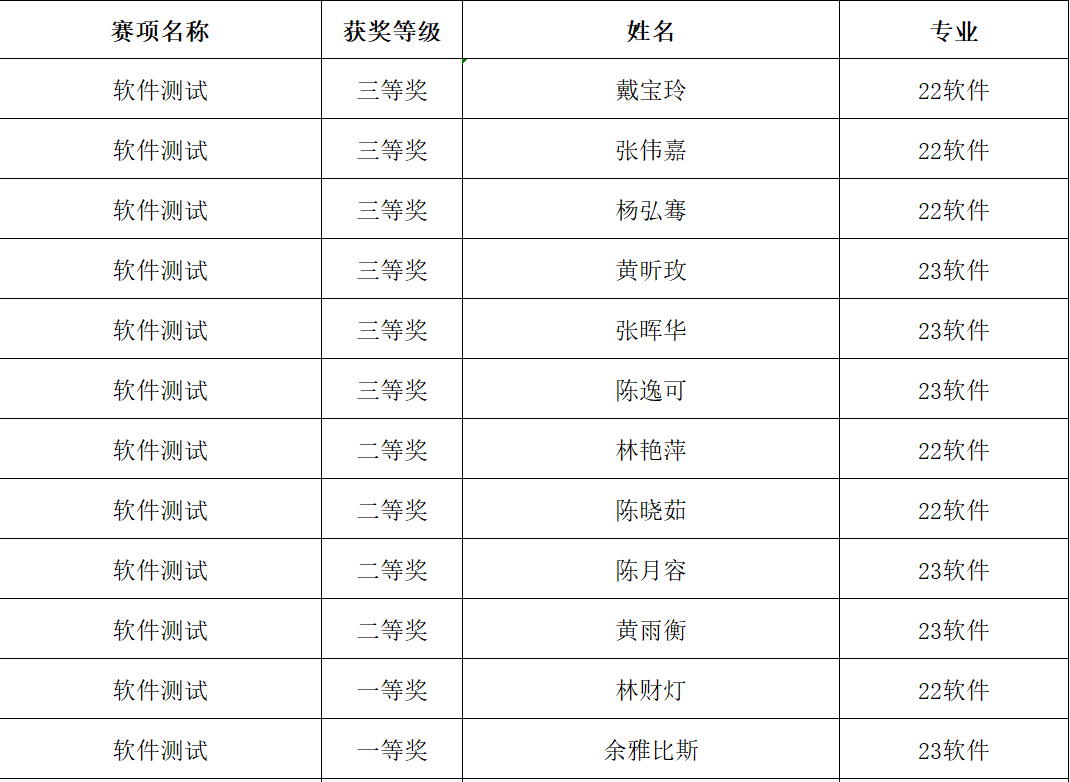 软件测试赛项获奖名单
