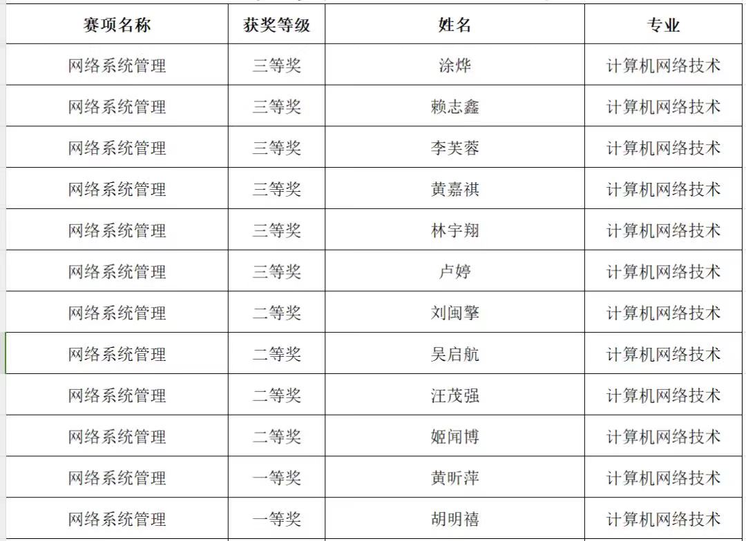 网络系统管理赛项获奖名单