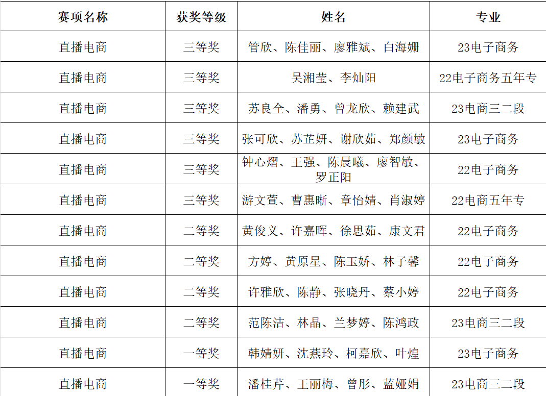 直播电商赛项获奖名单