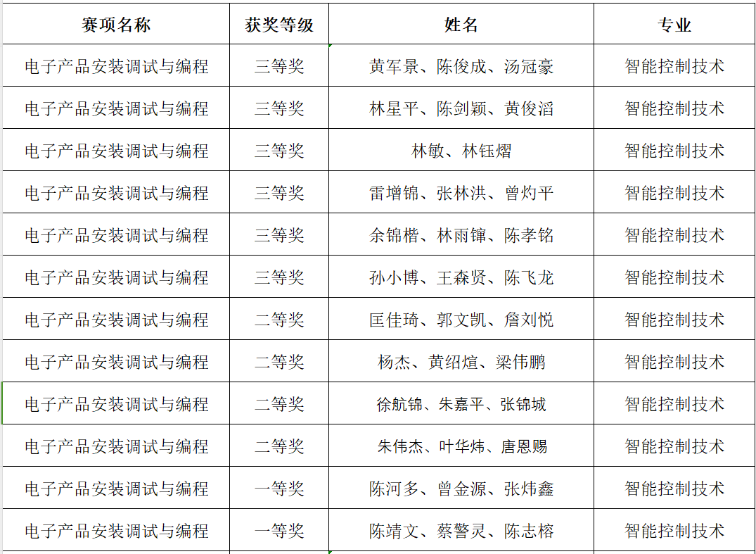 电子产品安装调试与编程赛项获奖名单