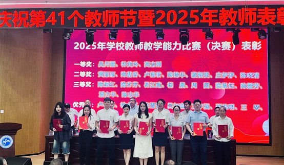 添加时间:2025-09-10 2025年9月10日,新葡的京官网举行庆祝第41个教师节暨2025教师表彰大会,会上表彰了一系类先进教师,其中我院也有多名教师获得表彰。