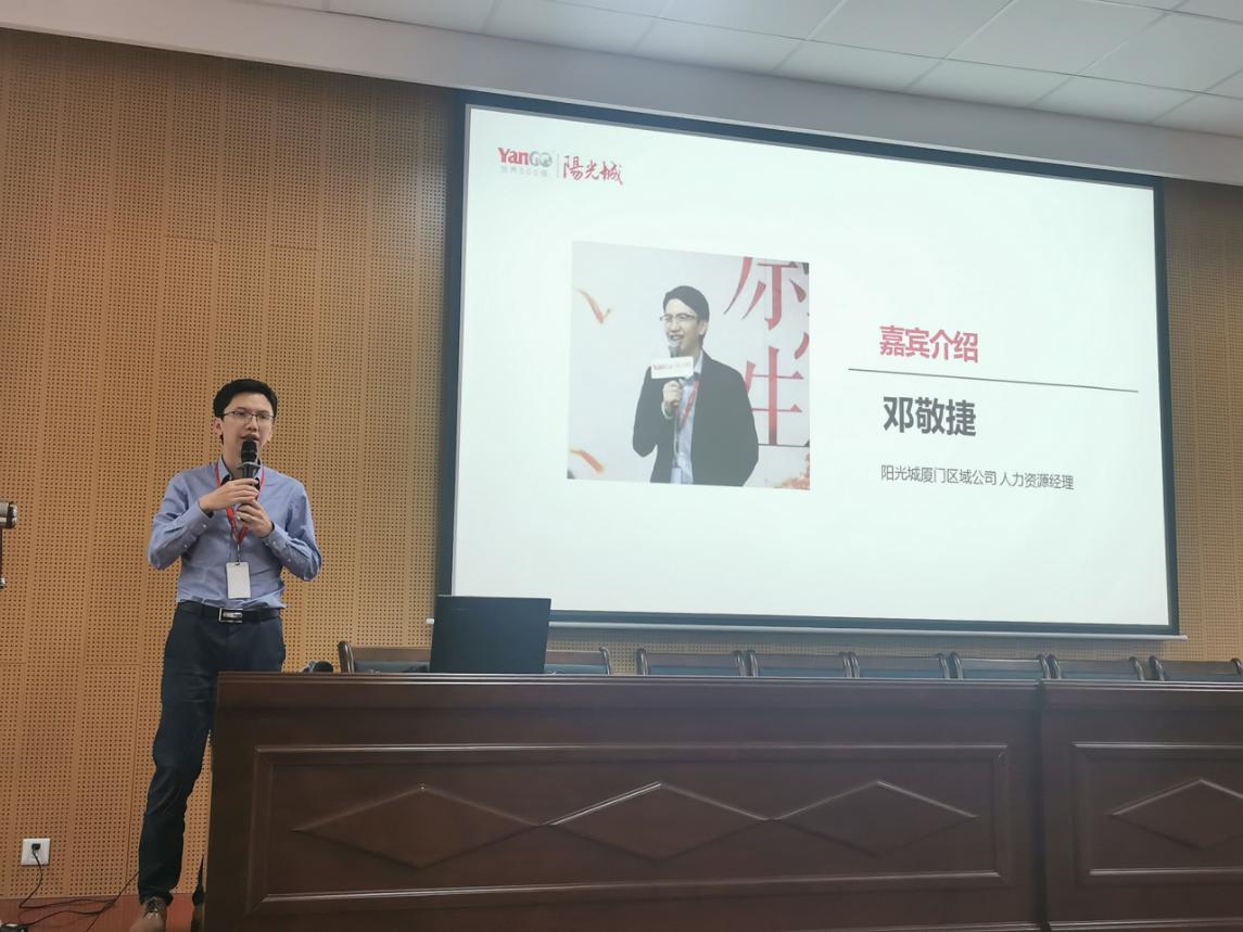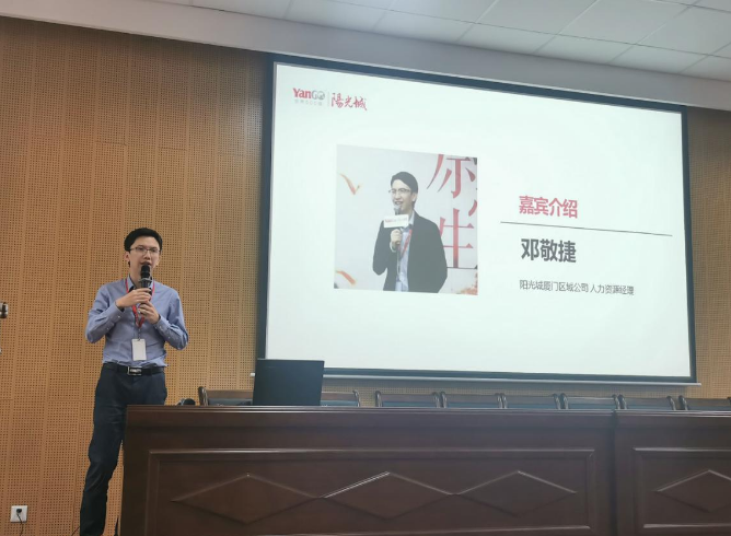 其次,阳光城厦门区域公司人力资源经理邓敬捷向我们学生进行就业指导分享,告诉了学生如何正确找准自己的定位,少走弯路,同时跟学生分享了面试技巧,大家反响热烈。最后,厦门区域渠道负责人张建明介绍了阳光城集团厦门区域公司光速计划。