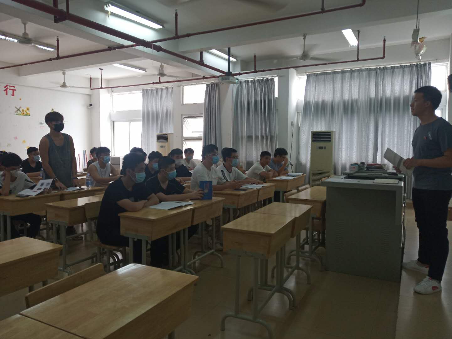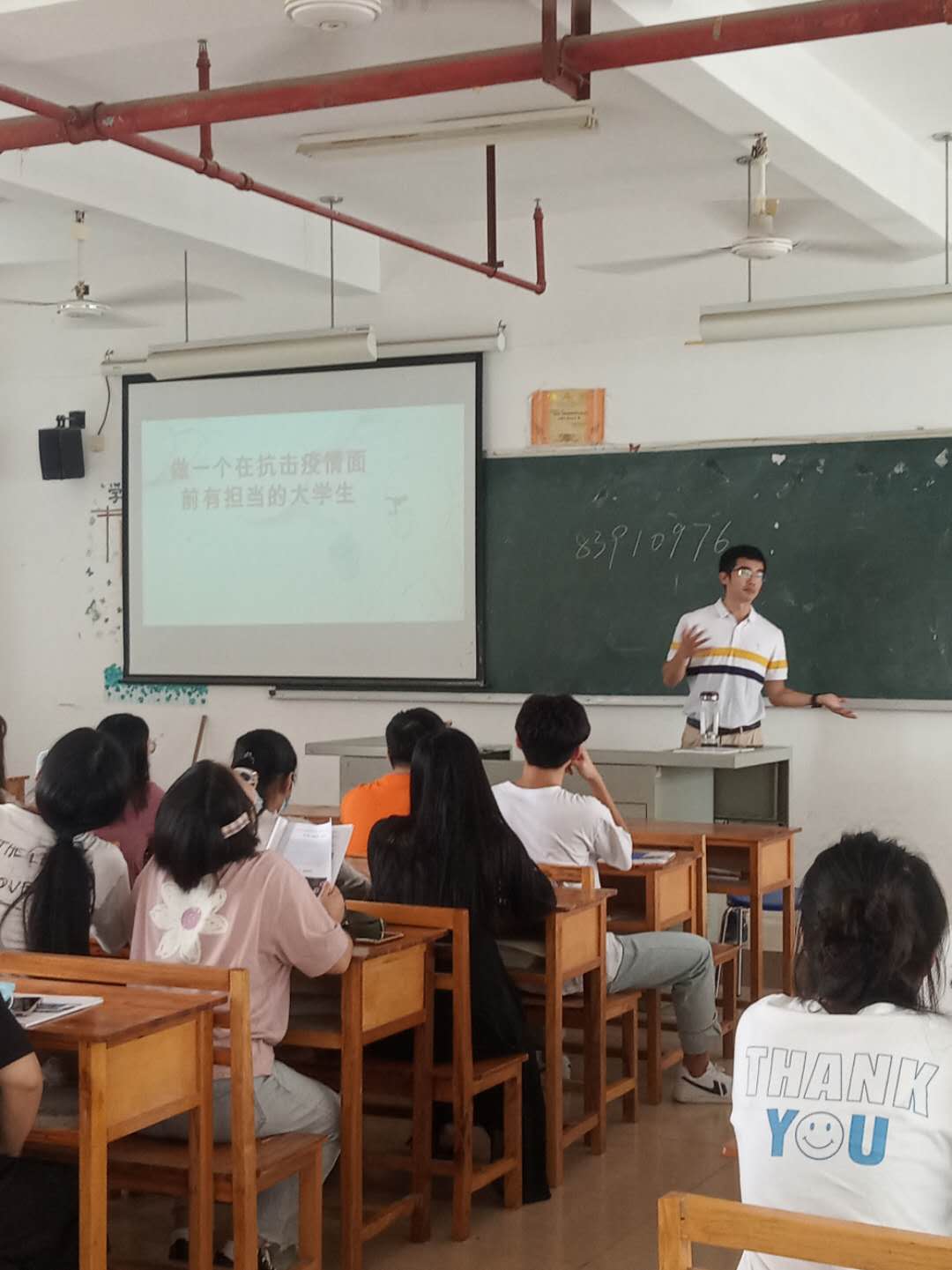 9月7日我院开展2020年新学期返校复学开设“开学第一课”—思政课。开学第一课主要围绕新葡的京官网来永宝校长编写的《抗击新冠肺炎疫情大学生应有的担当与责任》和《健康防护手册》两本教材内容为主题进行授课,这是特殊的一课,在这场突然齐来的疫情下对我们带来了巨大的影响。当代大学生更应该担起社会责任挺身而出。开学第一课我院张清禄院长带领学院老师下到班级巡查上课情况,亲切的与学生们交谈了解学生思想动态与学生返校后是否适应校园学习生活,引导学生们尽快习惯正常的线下学习与校园生活。