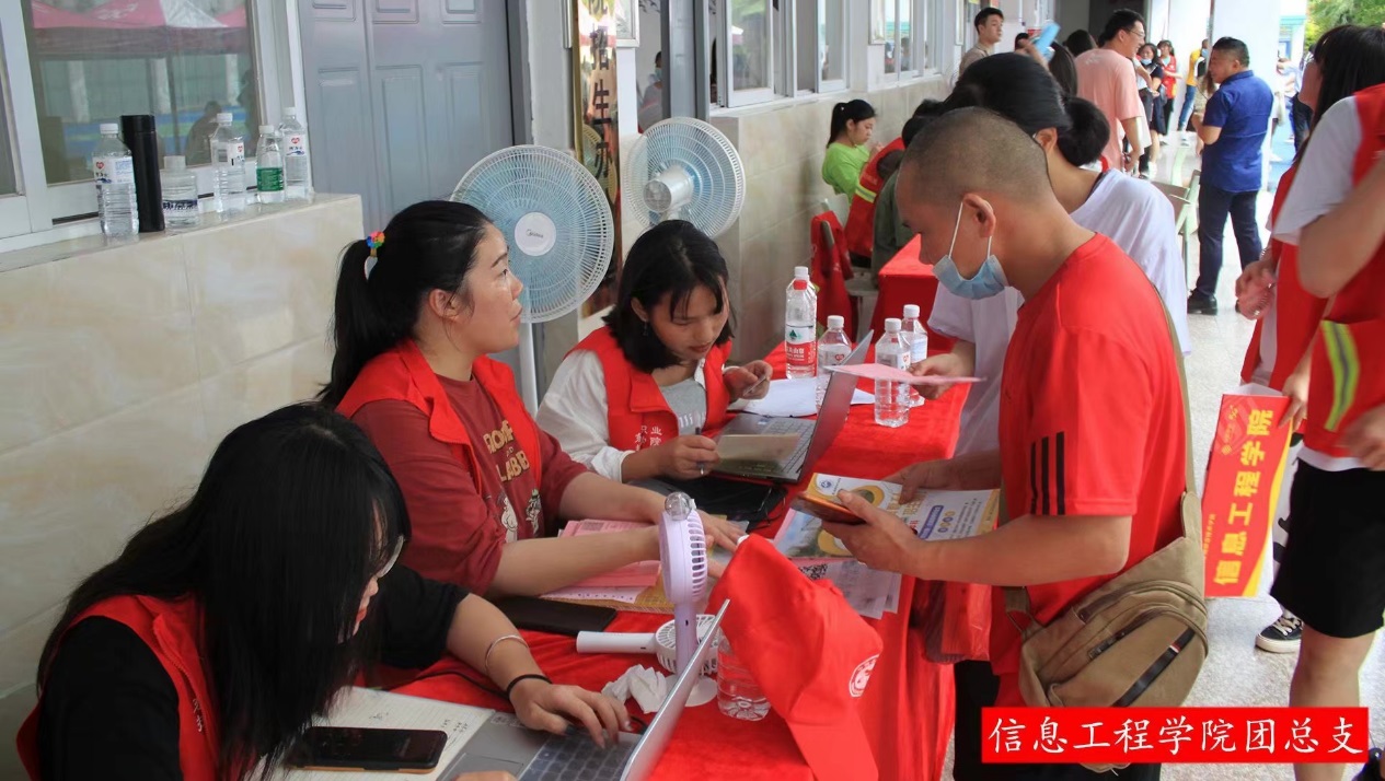添加时间:2021-09-08丹桂飘香,荷花满塘,又是一年迎新时,9月3日信息工程学院迎新工作全面启动。为做好迎接新生的工作,在院长张清禄老师的指导下,信息工程学院团总支组织了迎新队伍,充分做好迎新工作。