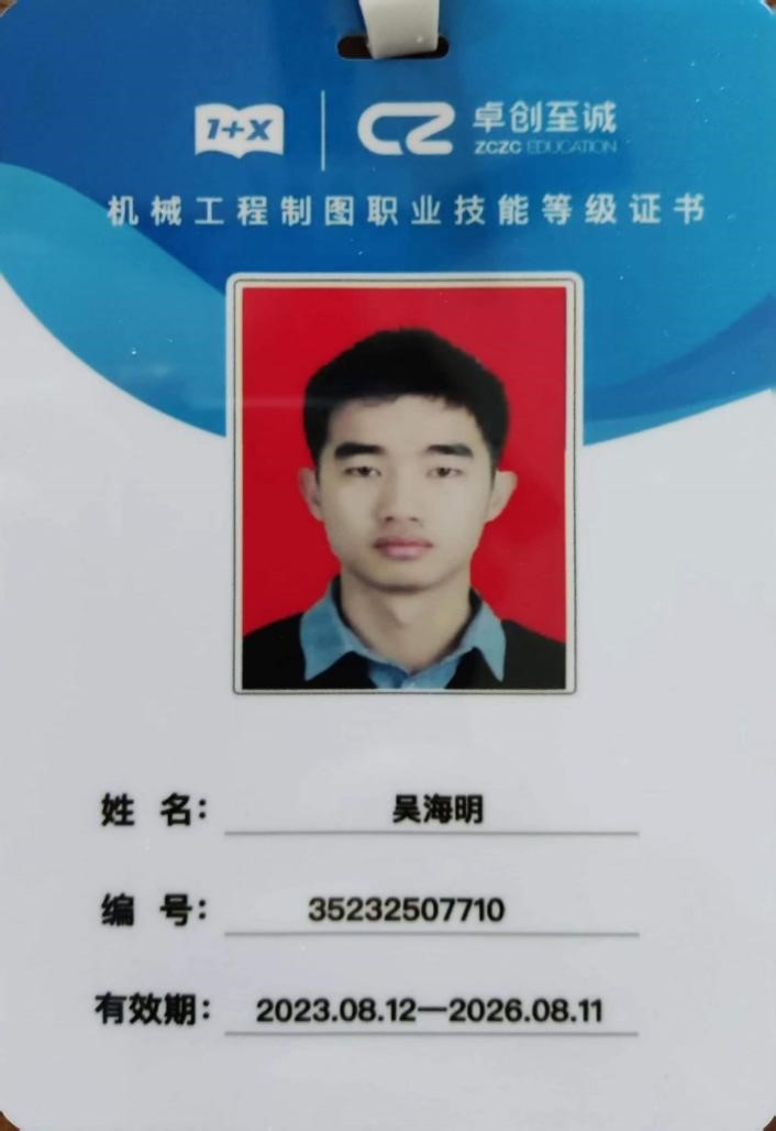 为贯彻落实1+X证书制度试点方案,加强教师队伍建设,2023年8月7日-8月12日,吴海明老师参加由北京卓创至诚技术有限公司主办、石家庄职业技术学院承办的机械工程制图职业技能等级证书师资培训。本次培训内容丰富全面,不仅使吴海明老师自身的业务能力得到了快速提升,同时顺利通过考核,取得了机械制图考官证书,为新葡的京官网1+X机械制图考评工作的顺利开展提供了技术保障。