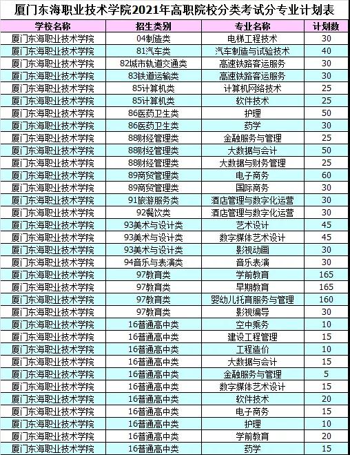 东海职业技术学院2021年高职分类考试招生计划来啦!