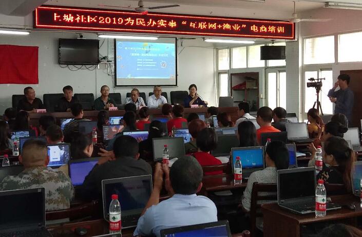 2019年4月20日-4月22日,厦门市2019年为民办实事项目“ 互联网+渔业电商培训班”第二期在翔安区上塘社区如期开班,此次旨在为厦门市从事及意向从事渔业人员提供一次学习的机会,拓展学员视野,更新学员理念,有效提升从业人员技能,提高转产就业及适应社会的能力,促进就业。培训课程由我院电商教研室黄国忠老师、陈碧云老师主讲。“此次培训将让渔民朋友们更好地走向社会、面向市场。只要他们认真学习,一定会有所收获。