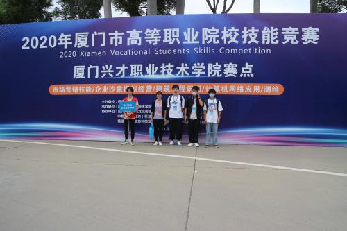 2020年11月7日信息工程学院黄明超、郑鄂湘两位老师带队,陈永旭、丁玉莲、胡鸿鹏、陈寒冰、朱龙祥、俞金海六位同学参加了厦门市高职院校技能竞赛“计算机网络应用”项目,在比赛中同学们体现了团队合作的精神,表现出色获得了竞赛三等奖的好成绩。