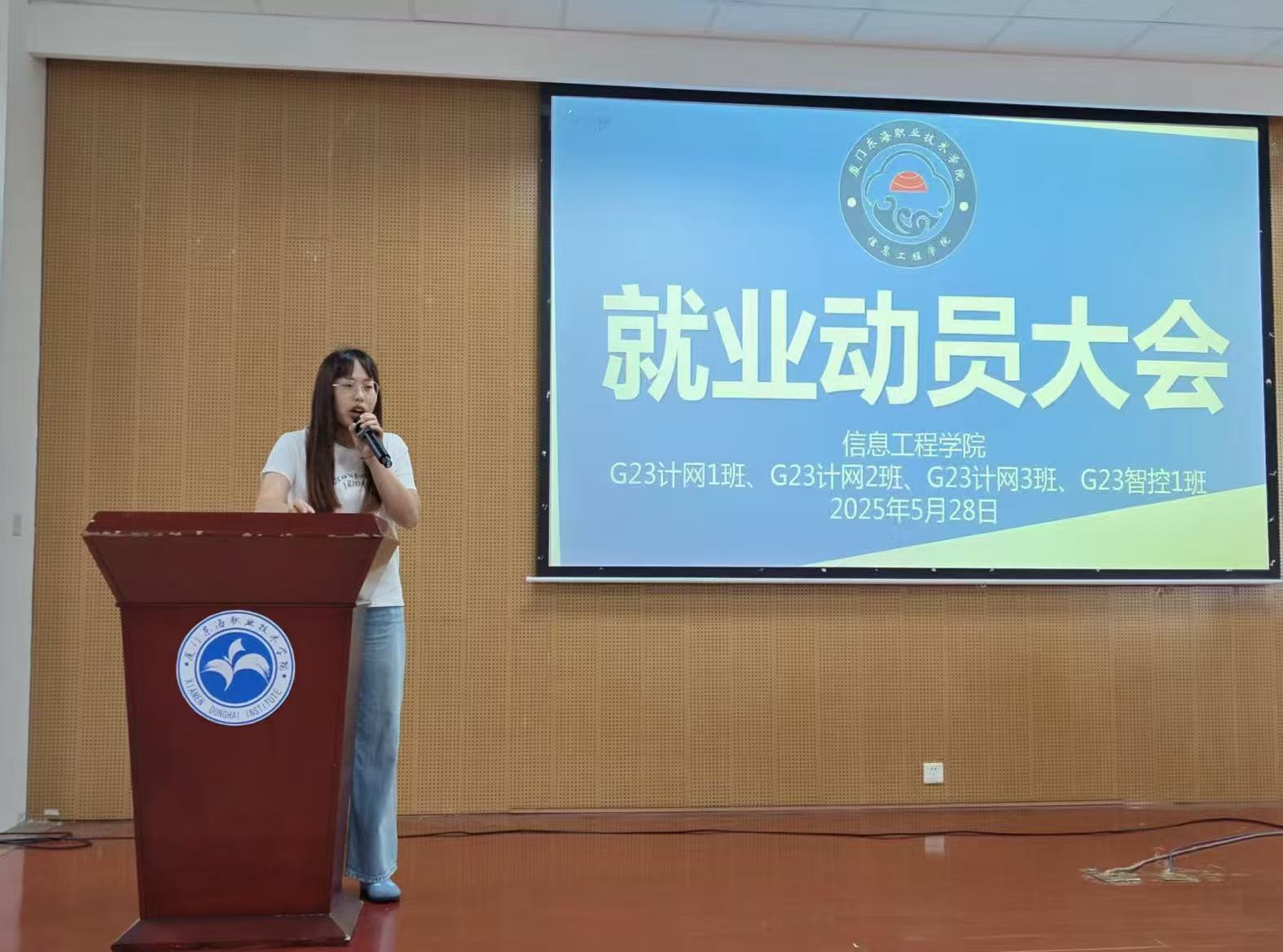 为深入贯彻落实党中央、国务院关于高校毕业生就业工作的决策部署,进一步推进学院毕业生就业工作,帮助毕业生认清就业形势、明确就业目标、提升就业竞争力,信息工程学院学院于2025年5月22日在思源楼报告厅隆重召开2026届就业动员大会暨福建兴莱实业有限公司专场宣讲会。此次活动旨在为同学们提供就业机会与发展方向,帮助他们更加深入了解企业需求,明确职业规划,提升就业竞争力。