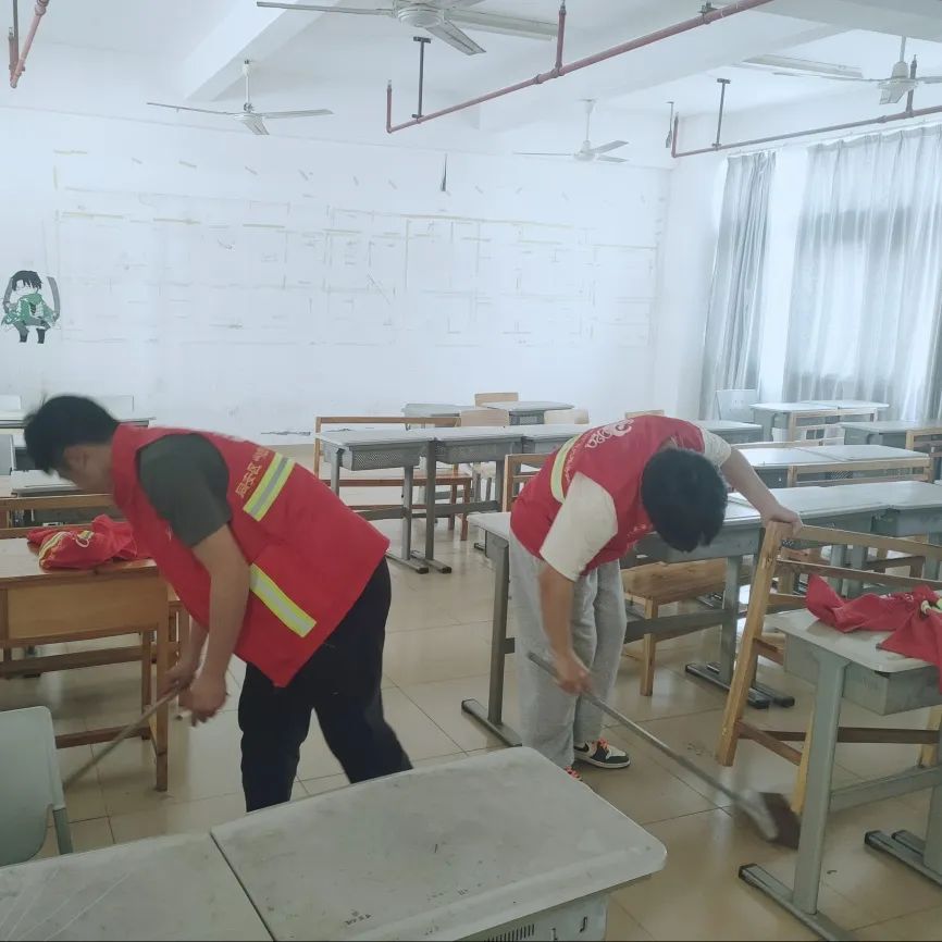 活动过程中志愿者们分成两组,一队负责打扫校园路边和卫生死角,清理丢弃在路边、绿化带的废纸、食品包装袋等垃圾;另一队志愿者们则提着水桶,拿着布,清洁教室,志愿者们充分发挥了“不怕苦、不怕累、不怕脏”的雷锋精神,以劳动为荣,团结协作,合力打造文明整洁的校园环境。